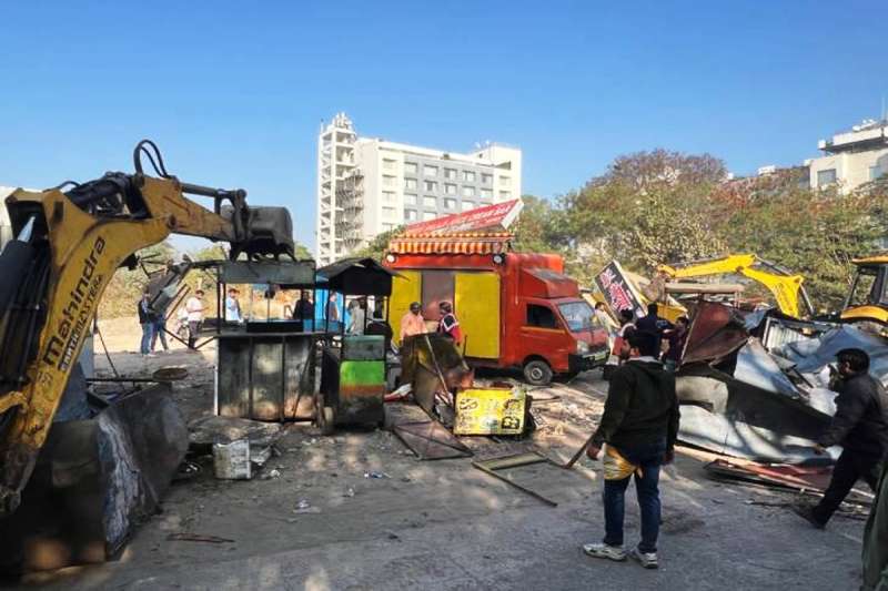 मेघदूत चौपाटी की 200 से ज्यादा गुमटियों को नगर निगम ने किया ध्वस्त, व्यापारी बौखलाए