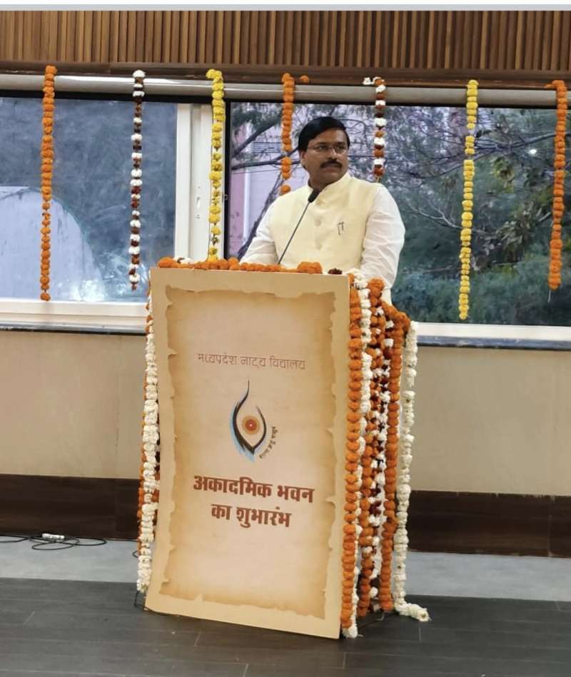 उन्होंने कहा किज्ञइसके लिए माननीय मुख्यमंत्री डॉ मोहन यादव जी और हमारे प्रमुख सचिव शेखर शुक्ला जी सहित पूरी टीम को बधाई देता हूं। हमारा प्रयास है कि हम मध्य प्रदेश नाट्य विद्यालय को राष्ट्रीय और अंतरराष्ट्रीय नाट्य विद्यालय की तर्ज पर विकसित करेंगे। संस्कृति विभाग के प्रमुख सचिव शेखर शुक्ला ने इस अवसर पर नाट्य विद्यालय के निदेशक टीकम जोशी की प्रशंसा करते हुए कहा कि उन्होंने कम समय में विद्यालय की तरक्की के लिए सार्थक प्रयास किए हैं। उन्होंने कहा कि हम जल्द ही इसे पीजी डिप्लोमा से पीजी डिग्री कोर्स में बदलने का प्रयास करेंगे। उन्होंने कहा कि हम इसे देश का सर्वश्रेष्ठ नाटक विद्यालय बनाने का प्रयास करेंगे। टीकम जोशी को इंगित करते हुए उन्होंने कहा कि हमें भारत भवन की रेपिटरी को भी पुनः स्थापित करना है। इससे पहले विद्यालय के निदेशक टीकम जोशी ने अतिथियों से आग्रह किया कि वे बच्चों को मोटिवेट करें कि उन्हें जो स्ट्रक्चर मिला है उसका सदुपयोग करें तथा प्रदेश के साथ- साथ यहां की कला और संस्कृति के प्रति अपने दायित्वों को पूरा करें ।उन्होंने कहा कि मंत्री जी की भावना के अनुरूप नाट्य विद्यालय को ऊंचाइयों पर ले जाने के लिए वह कोई कसर नहीं छोड़ेंगे। इस मौके पर संस्कृति संचालक एन.पी. नामदेव और वरिष्ठ कला समीक्षक गिरिजा शंकर ने भी कार्यक्रम को संबोधित किया। विद्यार्थियों ने पर रंग संगीत की आकर्षक प्रस्तुति दी। नाट्य विद्यालय में ऑडियो रूम ,ब्लैक बॉक्स थिएटर जैसी आधुनिक सुविधाएं उपलब्ध होंगी