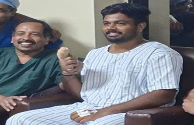 संजू सैमसन की हॉस्पिटल से तस्वीर वायरल, इंग्लैंड के खिलाफ T20 में लगी थी चोट