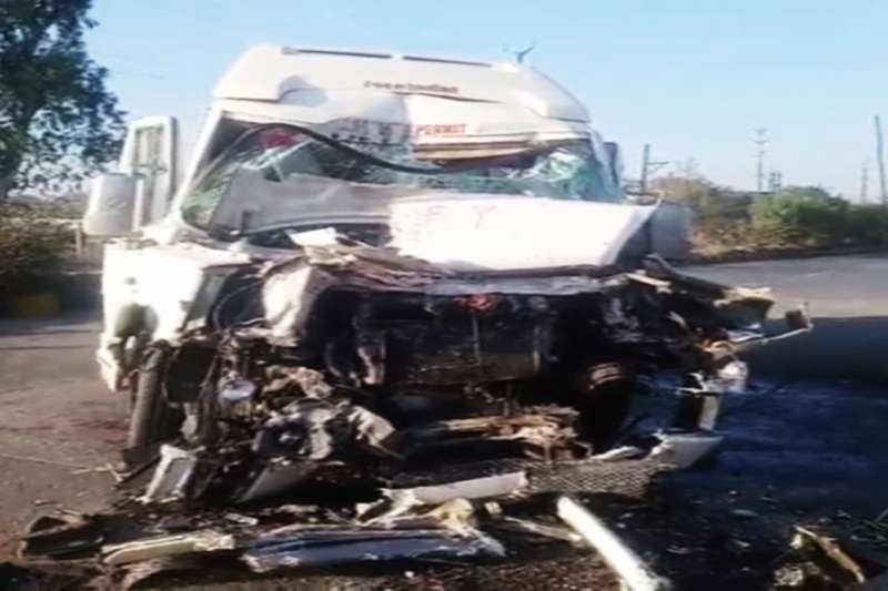 इंदौर: अहमदाबाद से महाकुंभ जा रही श्रद्धालुओं से भरी ट्रैवलर बस कंटेनर से टकराई, हादसे में 1 व्यक्ति की मौत