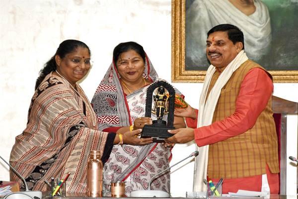 भोपाल : लोक स्वास्थ्य यांत्रिकी मंत्री संपतिया उइके एवं महिला बाल विकास निर्मला भूरिया ने मुख्यमंत्री डॉ. मोहन यादव को ग्लोबल इन्वेस्टर्स समिट 2025 की अभूतपूर्व सफलता के लिए शॉल, श्रीफल और भगवान श्रीराम की प्रतिमा भेंट कर बधाई दी।