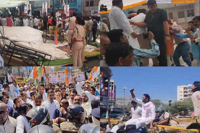 प्रदर्शन के दौरान मंच गिरते ही कांग्रेस का प्रदर्शन तेज हो गया. किसानों के प्रदर्शन को बड़ा रूप लेने से रोकने के लिए पुलिसकर्मियों ने वाटर कैनन के साथ आंसू गैस का भी इंतजाम किया था। मौके पर मौजूद प्रदर्शनकारी इतने ज्यादा थे कि उन्होंने पुलिसकर्मियों पर काबू पा लिया। मौके पर मौजूद फोर्स को काफी मुश्किलों का सामना करना पड़ा। पुलिस पहले से ही लोगों को रोकने की कोशिश कर रही थी, लेकिन जब मंच टूटा तो कांग्रेस नेताओं में गुस्सा देखने को मिला। उनका विरोध और तेज हो गया। वे हाथों में झंडे लेकर प्रदर्शन करने लगे। उनका हंगामा भी तेज हो गया। प्रशासन उन्हें पूरी तरह से रोकने की कोशिश कर रहा था, लेकिन मौके पर मौजूद प्रदर्शनकारी प्रशासन की ओर बढ़ रहे थे।