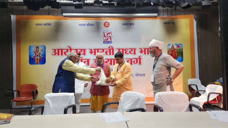 आरोग्य भारती मध्य भारत प्रान्त के प्रांतीय अभ्यास वर्ग का आयोजन भोपाल के राज्य कृषि विस्तार प्रशिक्षण संस्थान, भदभदा रोड भोपाल में किया गया। आरोग्य भारती स्वास्थ्य के क्षेत्र में कार्य कार्य करने वाला राष्ट्रीय स्वयंसेवक संघ का एक अनुषांगिक संगठन है। 2012 में स्थापना से लेकर आज समय तक आरोग्य भारती हर आयु वर्ग के लोगों के बीच उनके उत्तम स्वास्थ्य हेतु कार्यरत है। संगठन की अनेक गतिविधियां पूरे देश मे वर्षभर चलती रहती हैं। इसी क्रम में इन गतिविधियों के वृत्त हेतु प्रांतीय अभ्यास वर्ग का आयोजन किया गया जिसमें मध्यभारत प्रान्त के 20 से अधिक जिलों से कार्यकर्ताओं व पाधिकारियों ने भाग लिया। कार्यक्रम में प्रान्त की नई कार्यकारिणी का गठन किया गया। जिसमे वरिष्ठ ऑर्थोपेडिक एवं स्पाइन सर्जन व नर्मदा अस्पताल समूह के प्रमुख डॉ राजेश शर्मा को सर्वसम्मति से मध्यभारत प्रान्त का अध्यक्ष नियुक्त किया गया। ज्ञात हो कि डॉ राजेश शर्मा एक ऑर्थोपेडिक व स्पाइन सर्जन है एवं रोड व हाई वेलोसिटी ट्रॉमा के विशेषज्ञ हैं। पिछले 30 से अधिक वर्षों से अधिक समय से मध्यभारत में अपने चिकित्सा संस्थानो के माध्यम से सेवा में रत हैं। उनके सनातन स्वास्थ्य चिंतन के मॉडर्न मेडिसिन के परिपेक्ष्य में चिंतन पर गहन अध्ययन व कार्य एवं आध्यात्मिक स्वास्थ्य विषय पर गहन रुचि को ध्यान में रखकर उन्हें आरोग्य भारती में मध्यभारत प्रान्त के अध्यक्ष का दायित्व दिया गया। अभ्यास वर्ग में अनेक सत्रों का आयोजन हुआ। उद्घाटन सत्र को आरोग्य भारती के राष्ट्रीय सह संगठन सचिव डॉ मुरली कृष्ण जी , राष्ट्रीय स्वयंसेवक संघ के मध्यभारत प्रान्त के सह संघचालक डॉ राजेश सेठी जी, पालक अधिकारी श्री जगमीत सिंह नामधारी जी, और मध्यप्रदेश शासन के स्वास्थ्य राज्य मंत्री श्री नरेन्द्र शिवाजी पटेल ने संबोधित किया । पूरे दिन चले सत्रों में वर्षभर चलने वाली कार्य योजना पर विस्तार से चर्चा हुई। वर्ग में प्रान्त संगठन सचिव श्री मुकेश दीक्षित जी, और आरोग्य भारती की राष्ट्रीय कार्यसमिति के सदस्य मिहिर झा जी विशेष रूप से उपस्थित रहे। कार्यक्रम में मध्यभारत प्रान्त के 20 अधिक जिलों से पधारे कार्यकर्ताओं व अधिकारियों ने अपनी उपस्थिति दर्ज की। संचालन डॉ अजय चौकसे जी ने किया। कार्यक्रम के अंत मे निवर्तमान प्रान्त अध्यक्ष डॉ सत्यप्रकाश बत्रा जी ने सभी का आभार व्यक्त किया।