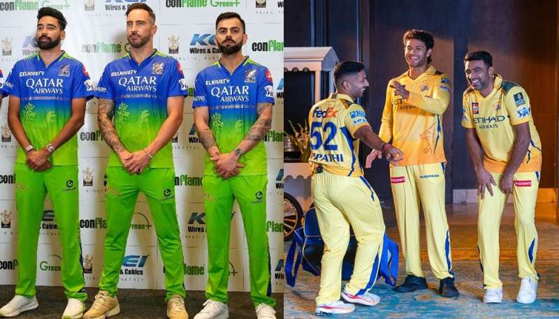 MI की जर्सी इस बार भी नीले रंग की है, जिसके कंधों पर गोल्डन स्ट्राइप्स मुंबई इंडियंस की पुरानी विरासत रहे हैं. मगर इस बार टीम का 'टाइटल लोगो' बदल गया है, जिससे जर्सी को एक नया लुक मिला है. CSK की जर्सी में भी कोई खास बदलाव नहीं हुआ है, लेकिन उसका भी टाइटल स्पॉन्सर बदल गया है. 2024 में उसे एक टायर कंपनी स्पॉन्सर कर रही थी, लेकिन अब जर्सी के सामने 'Etihad Airways' लिखा हुआ है.