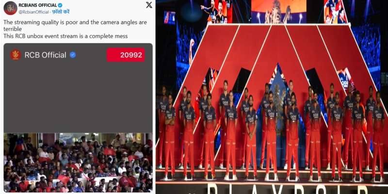 RCB अनबॉक्स इवेंट के दौरान भारी संख्या में फैंस स्टेडियम में मौजूद थे. RCB ने इस इवेंट के दौरान अपनी नई जर्सी का अनावरण किया. इसके साथ-साथ वैश्विक डीजे टिमी ट्रम्पेट और स्थानीय कलाकारों की परफॉर्मेंस भी देखने को मिली. कर्नाटक की व्हीलचेयर क्रिकेट टीम भी इवेंट में शामिल हुई. फैंस के लिए इस इवेंट की लाइव स्ट्रीमिंग भी उपलब्ध थी. लेकिन उसके लिए 99 रुपए के सब्सक्रिप्शन की जरूरत थी. भारी संख्या में फैंस ने 99 रुपए खर्च करके इस इवेंट को देगा. लेकिन लाइव स्ट्रीमिंग की वीडियो क्वालिटी देखकर फैंस को गुस्सा फूट गया.