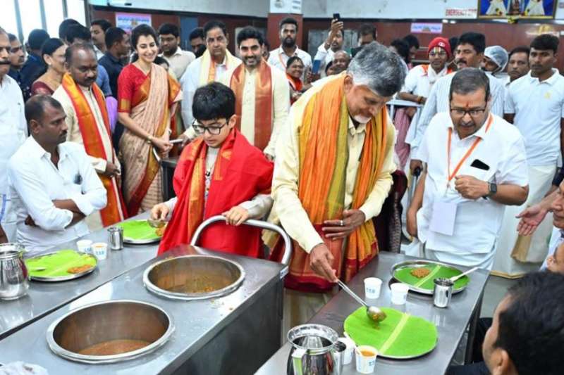 नायडू ने अपने परिवार के साथ मंदिर में पूजा-अर्चना की। सीएम ने अपने पोते के जन्मदिन पर मंदिर में एक दिन के अन्न प्रसादम का आयोजन किया। नायडू और उनके परिवार के लोगों ने व्यक्तिगत तौर पर स्वयं भक्तों को भोजन परोसा। सीएम ने टीडीपी बोर्ड के अधिकारियों और कर्मचारियों से मंदिर की पवित्रता बनाए रखने के लिए और अधिक प्रयास करने की बात कही।