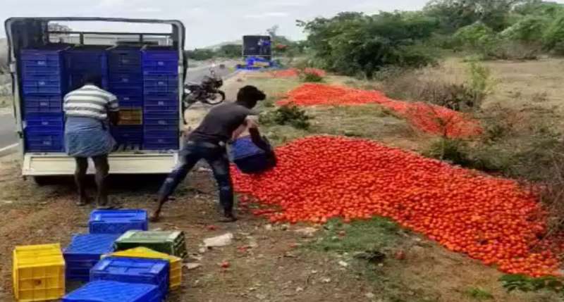 हमीरपुर में टमाटर के गिरते दामों से किसान परेशान, सड़कों पर फेंकी अपनी फसल
